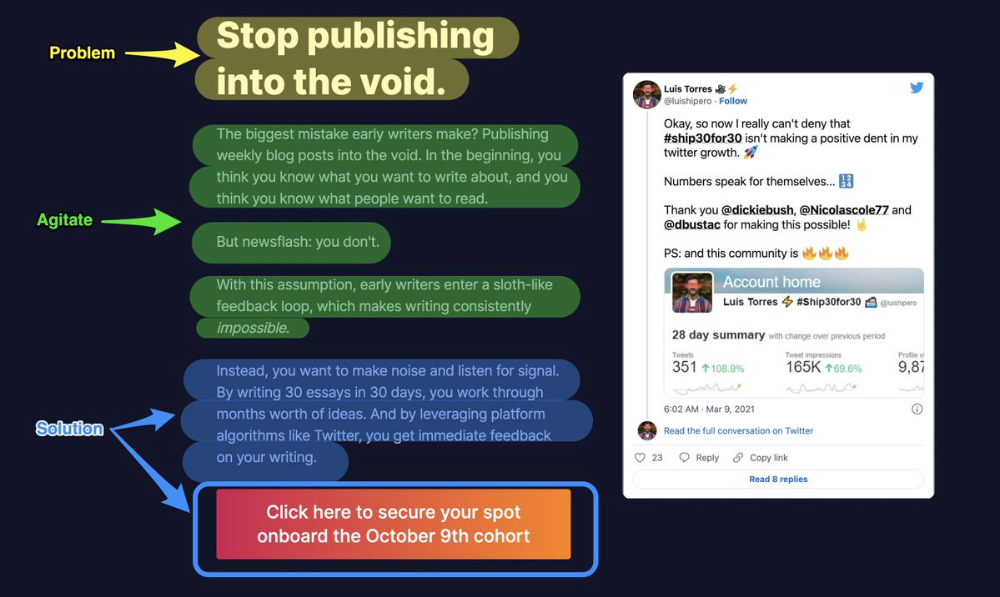 what you're sharing + why + +social proof what are you making